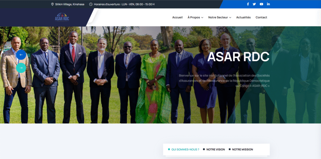 De asar-rdc.com à asar.cd : identité digitale modernisée, WordPress administrable, performances accrues et référencement national optimisé pour l’association des assureurs de RDC.